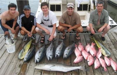 End of the line for us..summer is over and the kids are back in school..last trip for the week on a long holiday weekend..it was a busy summer but now we are slowing down..we are wide open just about every weekday between now and Janaury..good time to take advantage of the lighter crowds and spectacular fall fishing on the calm days..tuna are on the shelf and well offshore with the larger fish up in 350-1000 ft of water...Cobia are showing as well and late season snapper action has yielded a limit everytime...Also this morning, Capt Scott Leger returned with the Casbier crew from an overnight trip with 13 yellowfins and a limit of red snapper, the Postman crew struggled with yellows but came in with a nice catch of snapper jacks and blackfins Roberts son caughta 26 pound AJ..tuna is next..I had the Maristany crew and we had a little of everything..we ran all over but eventually ended up a heck of a box of fish..variety being the spice of life too..returned with one cobia, one tripletail, 2 flounder, one mangrove,a limit of red snapper,2 bull dolphin and 5 blackfin..best surprise of the day was my wife and kids waiting for me at the dock..this should be a regular occurence as our 18 man lodge and crew quarters is nearing completion..we should be open the first week of October..bring on the cold weather, close in fishing and SEC football!