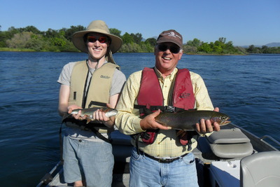 Sacramento River Trout fishing from Redding to Red Bluff has been awesome the past month with about 30 hookups a trip and will rename good for the next couple months. Most of the Wild Rainbow trout we have been catching are 12 to 22 inches long and weigh 1 lbs. to 6 lbs. they are all very hard fighting fish large or small. We practice catch and release on the Sacramento River. A camera is a must have on every trip. What are they biting on, Fly fishermen are using small nymphs under an indicator. Bait fishermen are drifting worms or crickets. Plug fishermen are using hot shots or flat fish.