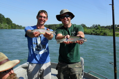Sacramento River Trout fishing is good now. The summer heat can be a little intimidating but when you are on the river fishing it is a lot cooler. The river water temperature is about 50 degrees and the flows out of Keswick dam are around 9500 cfs. The last few trips out have been very good we hooked about 20 trout and landed about 10 of the them on a 3 hour trip. What are they biting on Fly's, Plugs, and Bugs