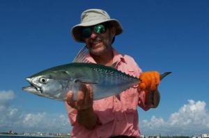 On the 28th, I returned to the same area with my good friend Captain John Kumiski, and the tarpon were nowhere to be found, so we decided to slow troll live pogies, and the kingfish, bonito, and large jacks were going off in close to the beach in 20 feet of water.