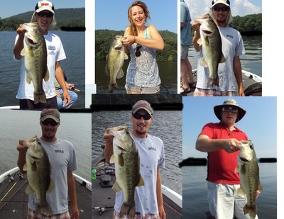 Fishing on Guntersville is great right now. You can catch fish shallow or ddep however you prefer. If you want to throw topwaters,frogs, and flip a Choo Choo jig you can in the shallow milfoil. If you want to fish deep ledges in 12-20ft and try to catch a hundred a day its very possible. It seems the numbers are on the ledges but most are small with a bigger fish coming every twenty fish or so. The shallow bite is alot less numbers but the size is there. The Titan jig has been the best for the fish over 5 lbs. The fish should only get better as the fish are really grouping up. I have July 18th,23rd,26th-27th,29th-31st.