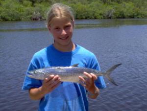 We released small mangrove snapper, triggerfish and ladyfish. The photo attached is of young angler, Michelle Sokol, with one of the Spanish mackerel she caught on a recent offshore trip.