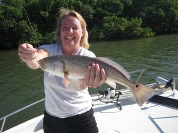 Thursday morning, 9/15, Michael Arnero and his girlfriend, Karen Tirella, fished Estero Bay's backwaters with me, along the islands east of New Pass, using live shrimp. The couple caught two keeper redfish at 19 inches and 20 inches and three keeper mangrove snapper. One big red and one big snook got caught under the bushes and got away from Karen. But she did catch and release a 19-inch snook.