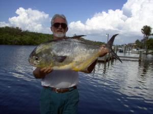Thursday, Greg Bedell and I ventured out 40 miles northwest from New Pass, stocked with live shrimp, squid, and crabs for bait. We caught three permit on crabs, and released the smallest of the three, in compliance with bag limits. We kept the 26 pounder (photo shown), and the 24 pounder, and released the 15 pound permit. We also got a 28 pound, 49 inch cobia. We saw a half dozen more cobia, and had a big one almost spool us, before it broke off. We also caught keeper lane snapper and mangrove snapper on shrimp and squid—all in all, a very productive day offshore.