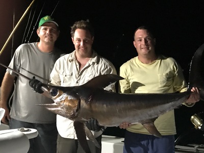 The seas have been calm and the temperatures hot. During the day we have been graced with mahi in our area all week with thick weed patches and weedlines. If you prefer to escape the heat, the night sword fishing has been really good. Last night we went 1 for 4 as well as some shark bites. These trips are great because we can stop for mahi on the way out there as well as hide from the sun into the night.