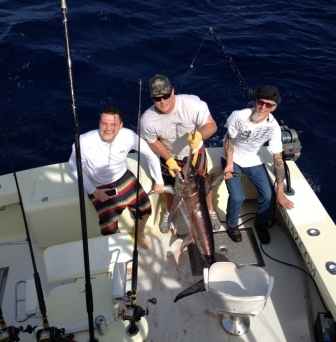 So when Darren and I found we were headed out for day timing for Swordfish, we were delighted! We loaded up Brad and his dad Jeff and headed out for our long run off shore, well, long for here since most our fish are caught within 2 miles of shore. This trip would take us over 2 hours of running with high speed lures out to get to our fishing grounds.