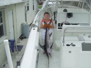 fish on it started jumping like a sail what a fight! ten minute's later I had a nice 65LB.er in the boat. Iwas so lucky the hook had flipped around the bill and hooked the leader.I was gone it started blowing out of the N.W. about 20mph tooktwo hour's to get back too boynton.