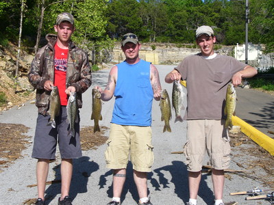 Talk about a crazy year. The lake is still 11 1/2 feet above normal pool and slowly dropping now that the flood gates are closed. The water temps have jumped 18 degrees in two weeks and is now topping out at 85 degrees in the afternoons. With the slow down in current the fishing is changing again. The morning topwater bite is still going in certain areas. White Bass , Smallmouth Bass and Kentucky Bass are hitting spooks and redfins for the first hour and a half of light. After the sun gets on the water real good the fish move out and some are hanging on the bottom while others are starting to suspend. The fish that are hanging around the original shoreline have seemed to have shrunk a little. With the warmer water temps I believe the bigger fish are moving toward their summer hangouts. Not saying they can't be caught shallow but the deep bite is starting to come on strong. On Table Rock summertime means nightcrawler time and the crawler bite has started. It wont be long and the deep trees will start holding the football size Kentuckies we all like to catch.Untill next time Good Fishin' Jamie