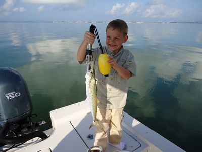 We changed gears and ran into the Gulf searching for bait schools holding mackerel. We scored several speedsters on silver Clark spoons. I took Rob and Luke to the Skyway with little success. Back on the flats we found Mackerel, trout and sharks willing to play. Watching kids like Luke is a thrill to say the least. The questions and observations from a 6 year old were amazing!