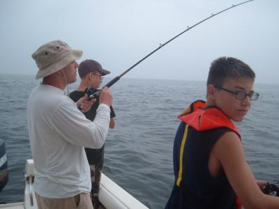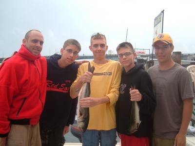Please bare with me as this will be more of a human interest stroy than a fishing report. About 2 weeks ago i was contacted by a gentleman to charter my boat. After going over all the details, we then came to picking a date. Kevin explained to me he was in the Army Stationed at Ft. Bragg, NC and was coming to NJ to visit family. He also stated that he would have his 4 sons Daniel, Ken, Kyle and Kameron, that he was just reunited with Kyle and Kameron after 2 yrs.
