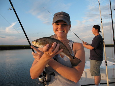 One thing about them is if they are there it is every cast. It is hard not to want to keep catching them when they are feeding like that. If you don't care about taking one home to eat it is a great way to spend 4 hrs on the water. We also caught several small Trout and 2 small Flounder.