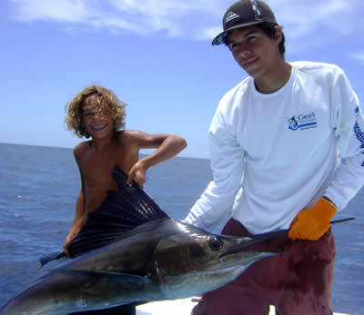 - Lino Guido, the WAHOO boat captain took Mika Grasso, Mika's mother and his cousin from JW Marriot in Tamarindo. They where fishing offshore/inshore in the Catalinas islands. Raised 2 sails and landed one, also released one nice rooster and caught a Mackarel for dinner as Mika said.