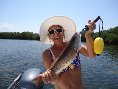I changed gears and ran to the outside of Weedon and things finally got better. Several trout then we got the redfish action started. In quick order we took 5 reds to 19". With enough time for one last stop we again got the redfish going with Angela scoring a beautiful 25" bruiser.