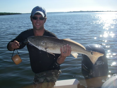 Redfish have been our second target species this week. I have been searching for redfish on the higher tides around oyster bars and undercut mangrove shorelines. As the tide moves in, the mullet and redfish move up and feed along the edges and on top of the oyster bars. A live shrimp, GULP new penny shrimp or plug of cut pinfish has been working very well. Another hot bait has been the Zara Spook, with topwater catches happening thoughout the day. I like using the gold with black back and the bone color. Both of these have proven to be consistent producers. When looking for redfish, I always first find mullet, and then slow down and work the area looking for gamefish.