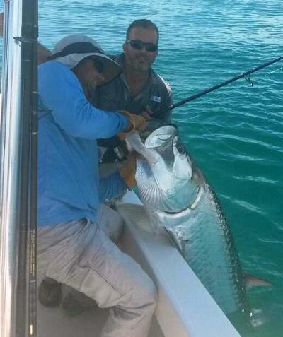 We are in peak season now and there are Tarpon everywhere. My best day in the last few days we landed 8, the smallest at about 75 pounds & the largest about 160 to 170. That's a pretty good day. I'm not really sure what the most I ever caught in a day is, well over ten, but I do know the most I ever caught by a single angler in my boat. Angler Kevin Moses came on a charter with me by himself about 5 or 6 years ago and landed 7 tarpon by himself in a single trip. What is more amazing about his feat is that he landed 5 of them before 10:30 in the morning and we started at 6 am. That's 5 full grown tarpon by one man in 5 and ½ hr. That is one hell of a workout, not to mention that two of the fish where 150 pound class fish. The smallest fish of the day was probably 90 pounds. Of all the spectacular days I have been so lucky to share with my fishermen on the water, that day would have to rank as one of the greatest.