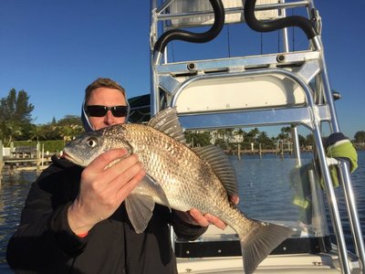 The past few days we have been destroying the Trout with keepers in the 16 to 20 inch class and a few larger ones mixed in. When the tide is right there are also a few good schools of larger 18 to 24 inch Trout feeding along with a few trophies over 26 inches mixed in. While targeting Redfish we have also been catching some nice Black Drum up to about 6 pounds, perfect eating size, along with a few Flounder and Sheepshead mixed in. There have been rumors of some Pompano around. I haven't looked for them much yet but plan to in the up and coming weeks. I have also been picking up a few Snook along the way and if the water temp warms up some next week I will target Snook more. We will have to see what this next front brings in. Either way we have been having a lot of action inshore. The Snook fishing really heats up in February, so a few warm days and it will be game on.