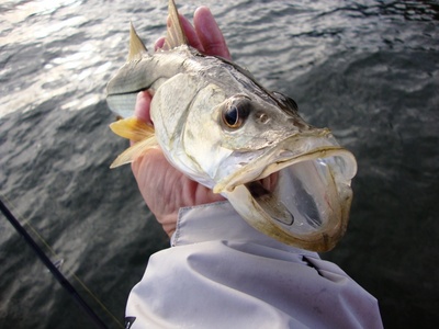 A quick 15 minute run had us on our first stop along the eastern shoreline above the Skyway Bridge. First bait in was nailed immediately by a rambunctious 24" snook. Next hookup was a flounder then another flounder. I can't recall catching so many flounder as I have the last 2 weeks. Several more small snook were taken before we moved on. This area has a sandy bottom that drops off quickly along the mangroves.