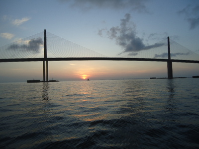 I took advantage of a day off and went where else…fishing. My day started before sunrise running to the Skyway Bridge for bait. The sun was rising as I passed the center span of Skyway Bridge it was so majestic I had to stop for a quick picture. Bait was thick and I quickly had more White Baits than I needed.