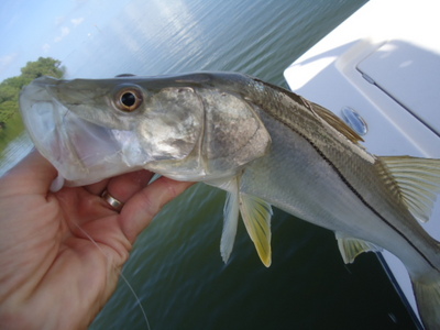 The incoming tide was now flowing so I headed into a Mangrove Island for snook and redfish. On my third cast my white bait was inhaled by a large snook. Before I could react the 35"+ snook was wrapped around some Mangroves then she came out only to run back into the mangroves. The snook went airborne and the line went limp.