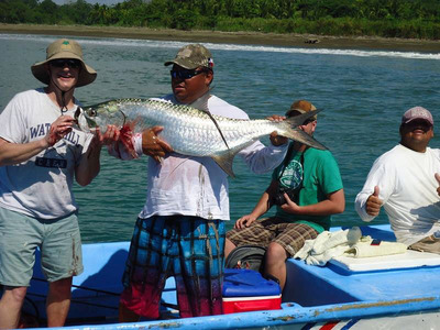 Not know to even be in the area, and never targeted for this reason the Tarpon was hooked and released and caused an amazing stir in the small fishing village of Quepos. Now after hearing of a story like this most would say "yeah right" however the photos that we received from and were taken by Captain Ricardo on the IDRA II it is clearly a Tarpon caught on the boat of Jeffery Zapata.