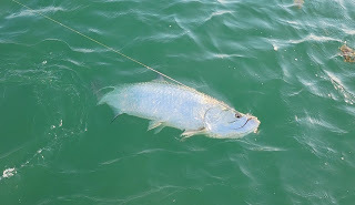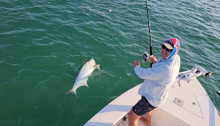 Steve fished with me last month and he was back today for tarpon fishing. I was a bit concerned because tarpon fishing has been slow but we hit it anyway and went for it. Turns out it was on fire! Steve ended up getting 7 fish to eat, hooking three and landing one, in the first hour and a half! We moved off to fish for snook where he landed one, lost another one and had a few more eat but not get hooked. We wrapped up the day bonefishing where he got some shots but didn't hook any although it was a bit slow for bonefishing. Either way, we enjoyed the silver and gold kind of day in Biscayne Bay!