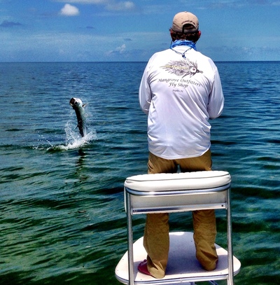 When choosing flies and fly lines to do battle with a Tarpon its important to consider the depth an angler will be targeting as well as the bottom color your fishing. Normally our local flats tend to be shallow and clear with depths averaging around 4-6ft of water. With water depths so shallow a weight forward floating fly line is a great all around line to use. Scientific Anglers Mastery Series and Rio Tarpon fly lines are choice lines that most of my fly anglers prefer. When choosing Tarpon fly's think small. Tarpon flies are normally tied on a 1/0 hook and tied with materials that create a dark silhouette and become lifelike when wet. Flies tied in all black and black and purple with marabou, craft fur, bunny, or a couple of splayed hackles will bring a wet fly to life when stripped. Variations of Toads, Megalopsicles, EP Baitfish flies, and smaller Black Death Patterns are very successful patterns that move just enough in the water to entice the keen eye sight of a hungry Tarpon.
