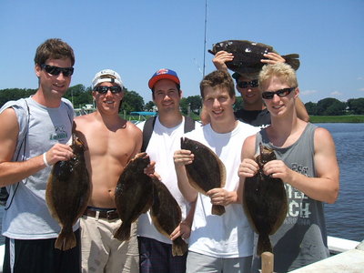left the dock this morning on a 6 hr charter with the ben hammond party, also on board was lee,kyle,matt,james and gary,made several drifts thru out the course of the trip where the group enjoyed action with the fluke alot of just short throw backs but also landing 7 keepers to 21 inches, a warm day on the water with a very nice bunch of anglers, capt Joe.