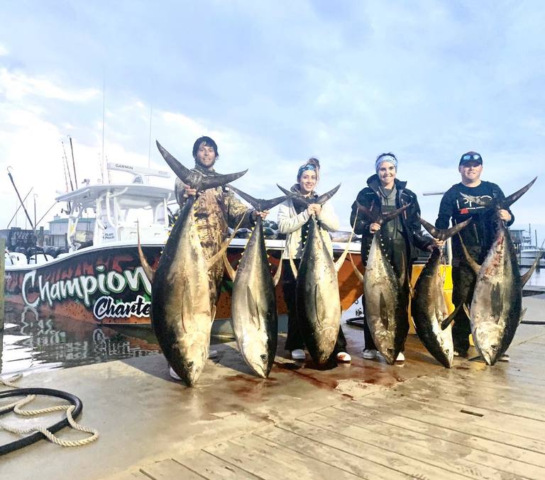 The Tuna's are biting. Today we were tight pretty much all day going 6 for 11 on the targeted species. We also pulled a hook and lost the others to sharks. This is the time of year we love as the big tuna are around and snappin. Are you ready to come to Venice?