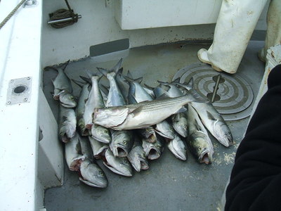 on board with us monday morning was the brandon hicks party, along with brandon was his father brandon senior and mother sandy and friend flo, once in the bay a steady pick of blue fish 20 fish in all to 10 pounds were boated and 1 keeper bass to 29 inches landed by brandon junior, a good trip until the wind picked up later in the morning, good action with a very nice bunch of anglers, capt Joe.