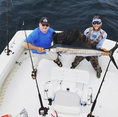 Kite-fishing is a truly amazing and engaging experience as you get to see the Sailfish AS THEY EAT the bait. Nothing gets the blood pumping like watching a double- or triple-header Sailfish bite up on the surface.We can fish up to three (3) live baits per kite, with at least two (2) kites up at any one time. We’re fishing between 90 and 250 feet of water. We’ve also had luck shallower than 90 feet as we watch Sailfish cartwheel in the midst of Ballyhoo schools up on the reef.