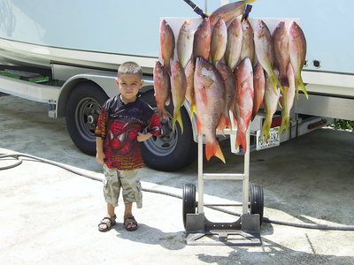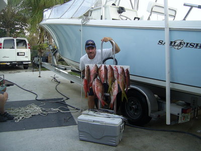 WE COULD NOT BUY A BITE I ENDED UP MOVING SIX TIME'S. BY NOON WE STOPPED FISHING AND STARTED CATCHING I BOATED THE FIRST FISH A NICE COBIA. THEN JOHN STARTED PULLING IN THE 5-8LB. MUTTON'S AND BIG TAIL'S ONE WAS 23". BY 3PM. WE HAD A COOLER FULL OF FISH THE BULL SHARK'S TOOK MORE THEN WE DID.