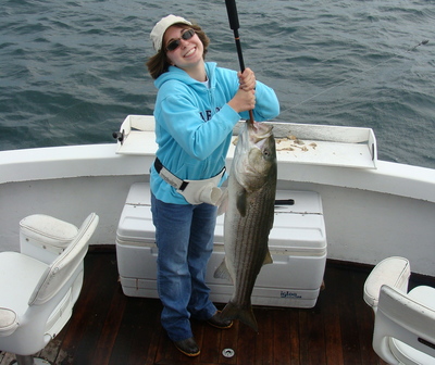 I fish out of Rock Harbor in Orleans, Ma. on Cape Cod. We're located on the inside of the elbow of the Cape so we fish the waters of Cape Cod Bay. Even though our season was a little slow trip-wise, the fishing was very good over all. There were days that all we found were bluefish, but we found plenty of them. There were days that we hooked up on some big stripers and when we did there were plenty of them also. For the most part we had good fishing with a little of both, good size bass and a fair amount of bluefish. It's not so much the amount of fish caught it's also about how you catch them.
