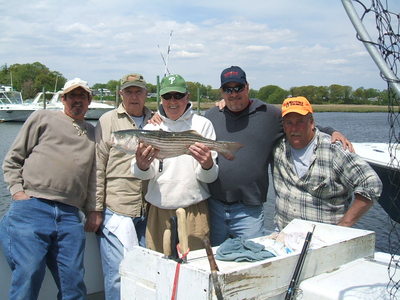 left the dock this morning with frank clark along with frank were george, joe al, and john, headed up to the sandy hook area where frank landed the only keeper bass at 29 inches, it was slow fishing today but a good time was had by all, capt Joe.