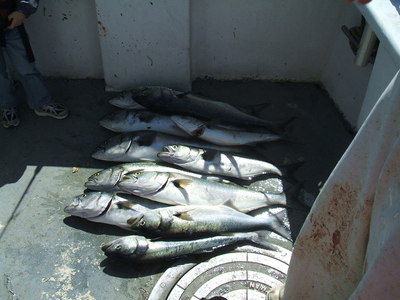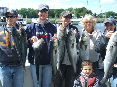 robin and diane, it didn't take long for these anglers to start bailing fish all blues to 10 pounds, the weather was great especially in the morning, 12 fish landed and as many lost at boatside, a great bunch of anglers a good time was had by all, capt Joe.
