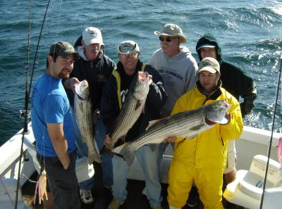 At a little before 5 am. on Sunday, June 10th, a group of anglers, employees of the Goose Hummock, went aboard the Stunmai II in Rock Harbor in Orleans, Ma. on Cape Cod. The were planning on fishing in the water of Cape Cod Bay. Fishing is what they did. These folks sell a lot of tackle to the novice and expert anglers on the Lower Cape. They all fish on there off time but rarely fish together on one boat. This Sunday morning things changed. As they landed both bass and bluefish the insults, very much in jest, were flying freely. At the end of this short but sweet trip it was very obvious that they enjoyed this early morning adventure. They say a picture is worth a thousand words. lets hope it's true.