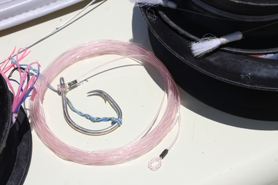 Using 10/0 circle hooks and triple hook rigs is your best bet. We are using eithe whole or half kingfish with the best success.