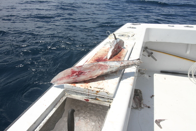 The shark fishing is worth a full report in it's own. We are getting several shots each trip. With the abundance of bonita and kingfish around, the sharks are hungry and waiting for one to slip up. Instead of waiting, we make it easy for them.