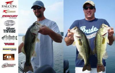 I got to fish with two guys from Ft. Payne, AL today. Launching out of Waterfront we headed up river for some (Zell Pop) topwater action. The bite didn't start off to strong but it improved as the sun got higher and temperature got hotter. We also used Yum ribbon tail worms, Yum floating worms and Booyah jigs to get bit. We even had a nice double today which Mickey is holding up. We targeted grass in the 4-8ft range