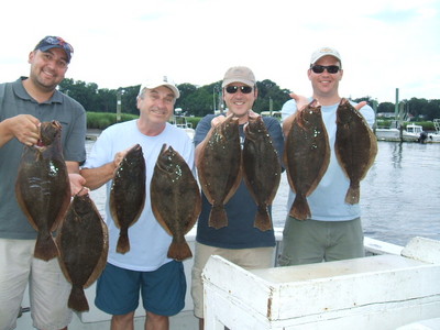 on board with us at 6:30 am this morning was jason winger and his father in law jozef and friends laurent and rick, first part of the trip was slow not much going on we made a few moves and just like that this group was into the fluke. many short fluke were taken and released in addition 10 quality keeper fluke to 23 inches were landed as well, a good time was had by this determined group of anglers.