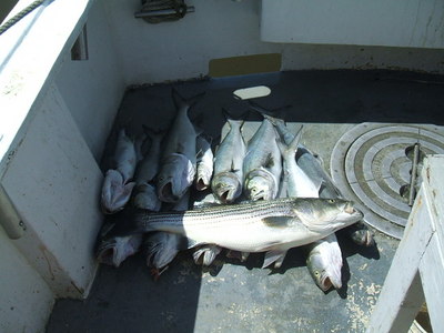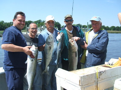 tony and joe, our first drop no action spotted working birds and began to pick away at blue fish it was slower fishing for the rest of the trip a couple of fish here and there,total fish for this trip was thirteen blues boated to 12 lbs and 4 bass 3 shorts and 1 keeper to 35 inches landed by neill,a good time was had by this fine group of anglers.