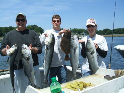we left the dock this morning with ken critchloy and his wife donna and son ken jr,once in the bay the group had good action all blues to 13 pounds a bakers dozen boated, in addition ken junior landed a nice 21 inch fluke just as we were about to try a different location, this party has fished with us before donna is fun to watch she knows exactly what she is doing out fishing ken sr and ken jr as well, a good time was had by this fine group of anglers, capt Joe.