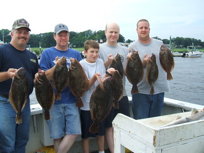 we left the dock this morning with mike detweiler also on board was bill, joe sr, joe jr age 13 and allen, the action started on the very first drift with a mix of short fluke and keepers, the total for the day was at least 50 shorts and 16 keepers to 24 inches, the big fish weighted in at 6.5 lbs, a great day of fishing with this fine group of anglers.