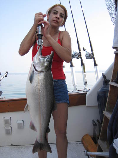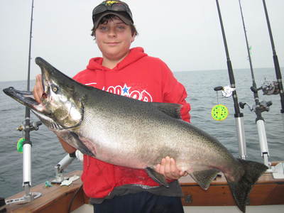 Fishing in front of the Salmon R. right now is incredible! Limit catches for the last week Kings and lots of big Coho! 35-70 fow Flasher and fly combos are doing the best with plugs taking fish early. Don't be afraid to fish the bath water.