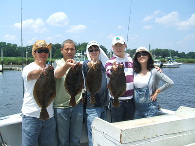 on board with us this morning was mr alex and friends steve,kitty,lee and joe, good drifting conditions today but not much action with the fluke, the group fished hard the entire trip but it was slow with the fishing, several short fluke were taken and released 4 keepers to 21 inches were also landed, a very good group of anglers who inspite of the conditions enjoyed a good day on the water.