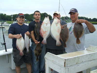 on board with us this morning at 6am was nick clemente and friends alberto, alex and andrew, we fished on the ambrose channel the entire trip where the group enjoyed steady action with the fluke catching and releasing many shorts but also landing 11 keepers to 25 inches,the big fish one 7 pounds and one 6 pounds were caught by nick, a great fluke trip with this fine bunch of anglers.