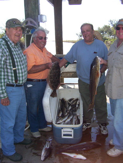 Bob, Charlie, Gene and Renaldo were thinking about cancelling because the forecast called for rain but we stuck with the plan and the day turned out perfect. No rain and lots of trout instead. This was Renaldo's first trip with me and man he was fishing machine "This how we catch'em in the Old Country was to be the joke of the day and got us all a lot of laugh's. The bite shut down at the first stop like turning off a light, so on the move second stop on them again for awhile but they got small. Third stop was the charm solid trout in the 2 lb range cast after cast until #100 hit the box. We fished around several spots trying the reds and got 4 for the grill and Bob getting a big doormat flounder at the last spot before calling it a day. The trout were hitting both live shrimp and plastics about the same. Redfish wanted the shrimp.