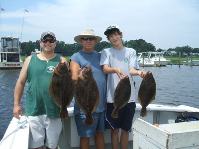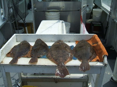 on board with us this morning was paul walsh and his son paul and nephew tim age 14, it wasn't long after our first drift that the storm blew thru and made fishing tough, we changed out location to deeper water where the group had action with the fluke mostly shorts but also landing 4 keepers to 25 inches long the big fish came in at 5 lbs, inspite of the early weather conditions the anglers did well and had a good time.