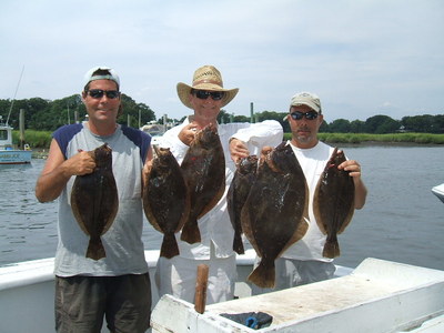 we left the dock this morning with the robert rusnack party, also on board was jim,john,tom,don and dave, we fished in the reach where the group enjoyed good action with the fluke many many shorts but also landing 6 quality keepers to 24 inches, the big fish weighted 5 lbs, a warm day on the water with a very good group of anglers, capt Joe.
