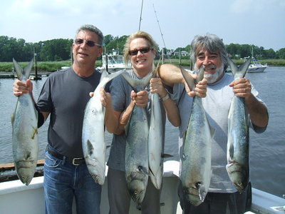 we left the dock this morning at 10am with ron didomenico and sue and eddie kaplan, our first drop good steady action with the blue fish with sue outfishing the men thruout this trip, a good bunch of blues to 11 lbs were boated by this fine bunch of anglers, capt Joe.