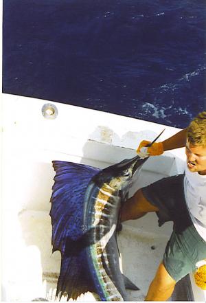 Well guys, although in the past few weeks we've been catching a sailfish here, a sailfish there, they haven't been biting as good as they usually do. This week the sailfishing was off the scale. Every day this week we have been seeing multiple sailfish on the kite and on the troll. Even the drift boat has been catching sails this week using dead ballyhoo. The Friday night swordfish trip the past couple of weeks was slow, but we really didn't have the moon. This next Friday trip is only a few days before the full moon, which is absolutely perfect so I expect a great trip on this Friday night.